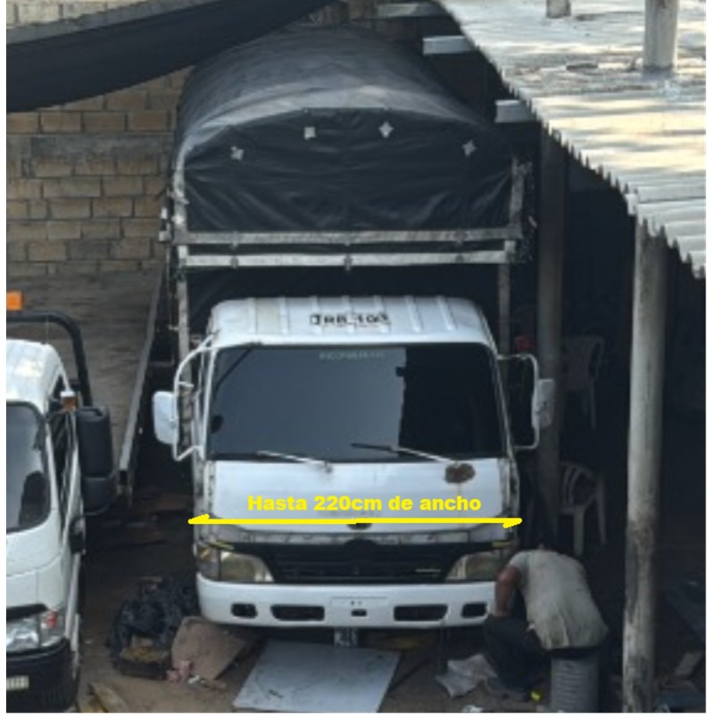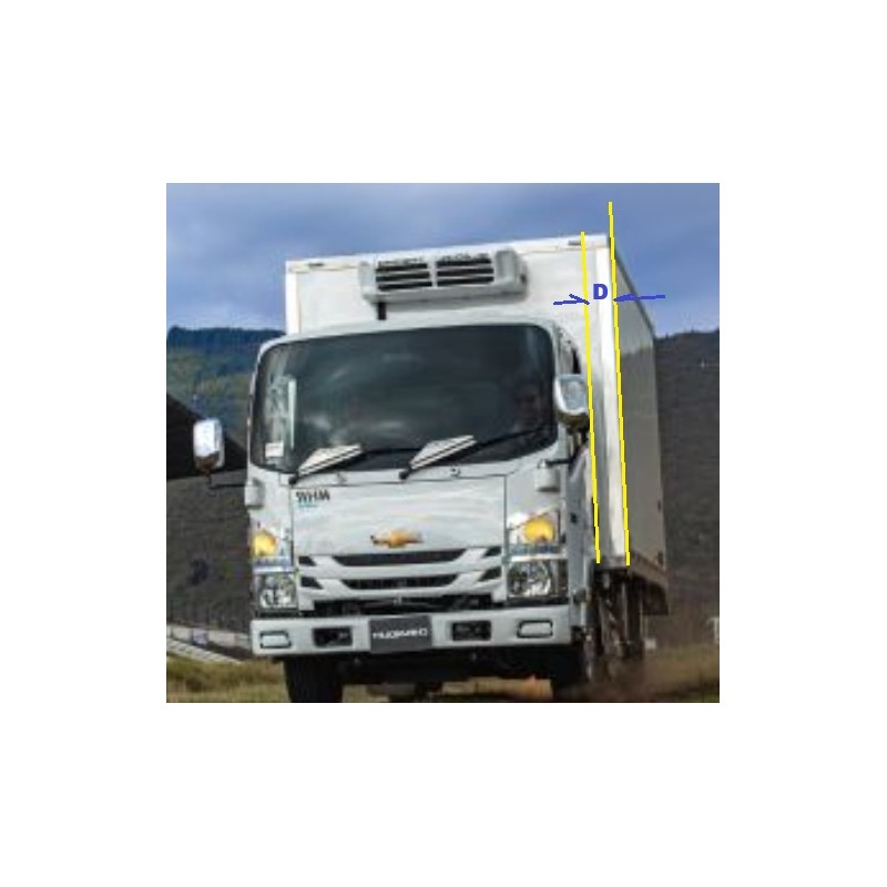 * Optimo para camiones hasta 220cm de ancho de cabina. Para el despacho se requiere verificar medida del ancho de la cabina y también del voladizo de la carrocería (si es mas ancha que la cabina, ver foto medida D). Adicionalmente se requiere foto de la puerta del camión para analizar si tiene vena y se pueden adaptar las bases de los brazos (superior e inferior).