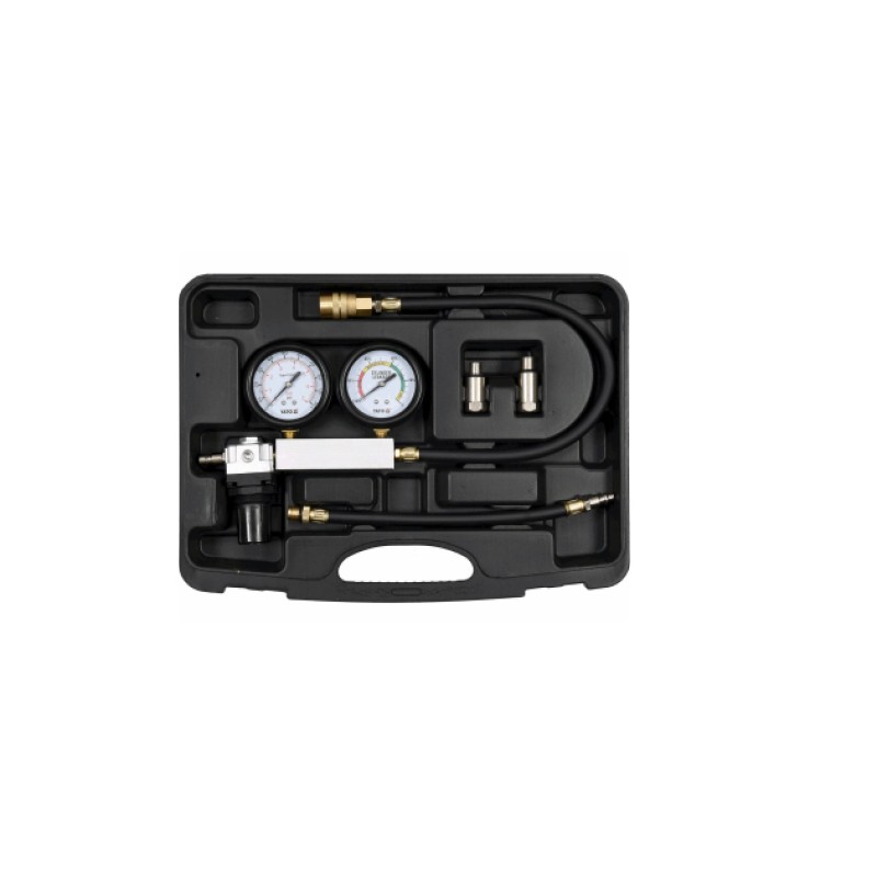 Permite diagnosticar rápida y fácilmente fugas en la cámara de combustión, probar el grado de desgaste del motor aplicando aire comprimido al cilindro y determinando el porcentaje de caída de presión causado por las fugas del cilindro.